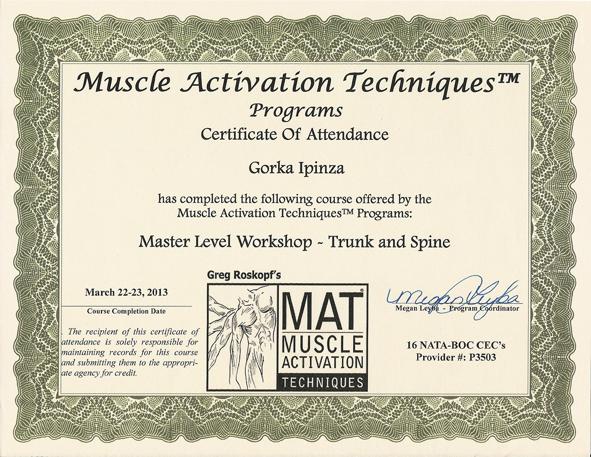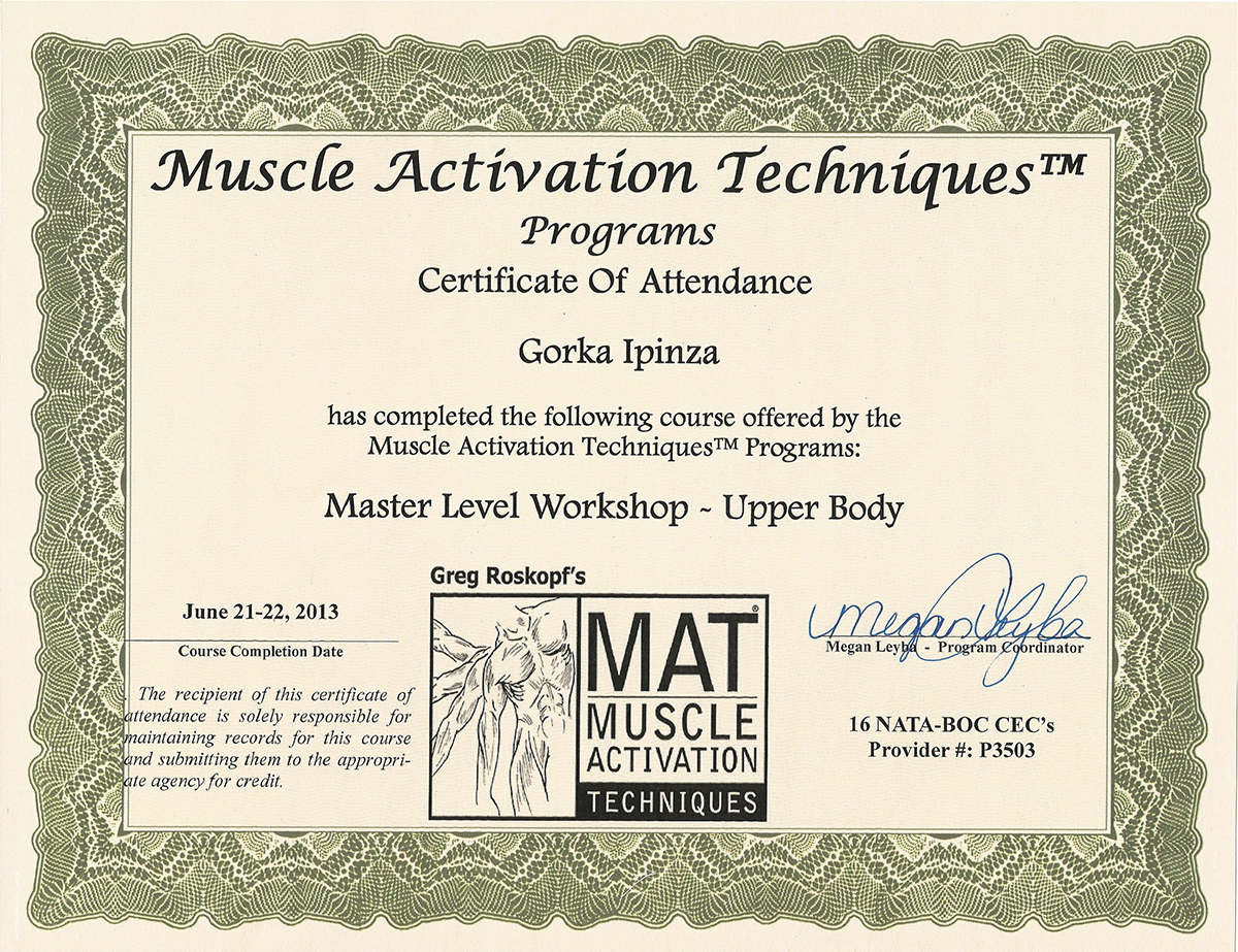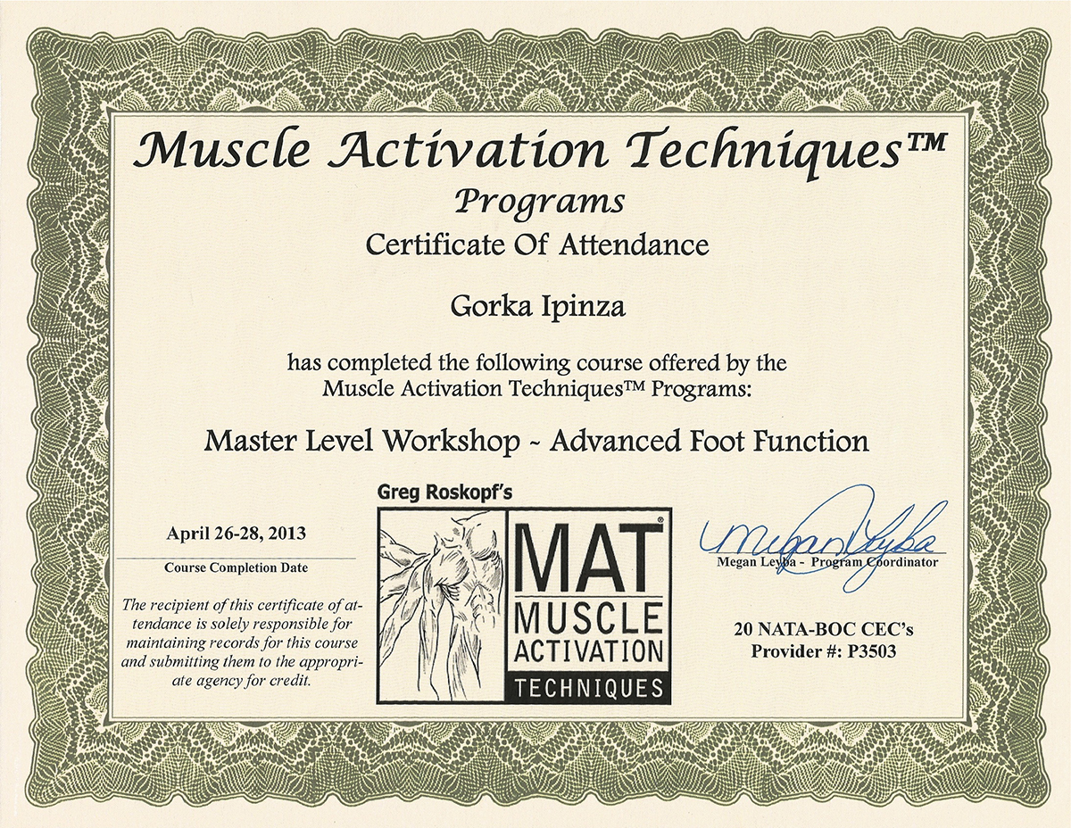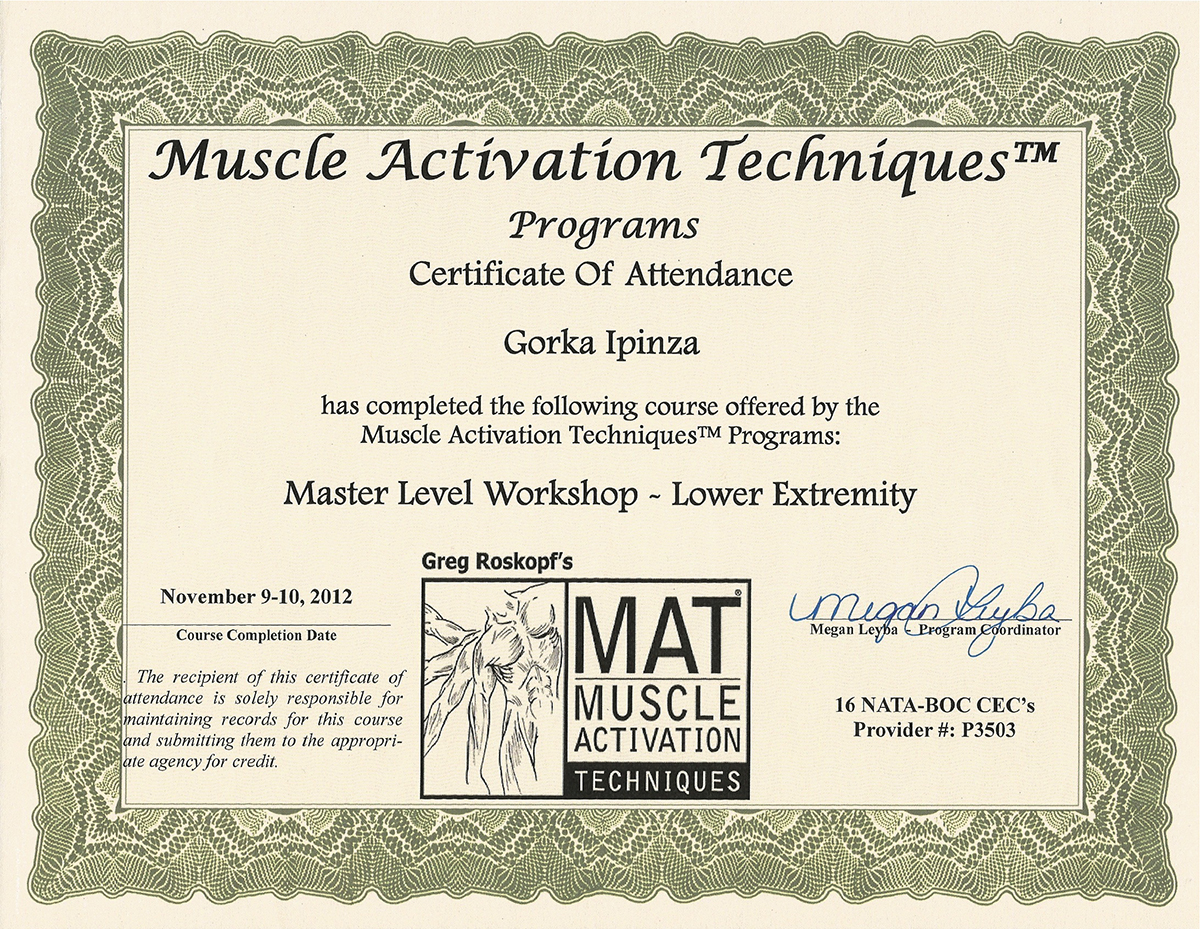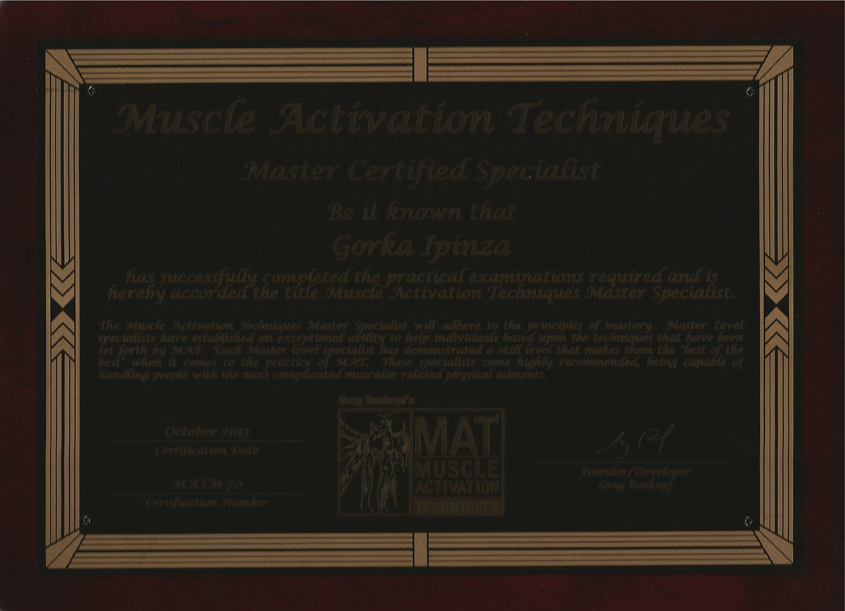 Gorka Ipinza te ofrece, como especialista en Técnicas de Activación Muscular - MAT, una amplia experiencia y trayectoria en la readaptación de lesiones, así como en el desarrollo de entrenamientos y refuerzo personalizados.